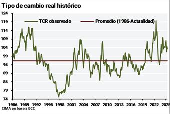 En términos históricos, el peso luce ligeramente depreciado respecto a su media histórica, con lo cual, el margen hacia la apreciación es muy pequeño,