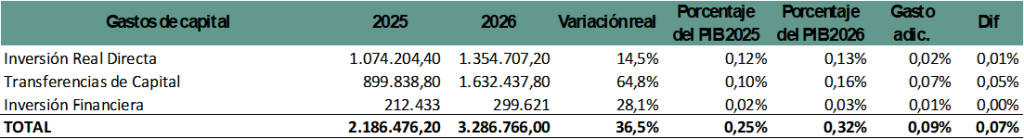 Por último, respecto al financiamiento de la obra pública, los gastos de capital aumentarían en 0.07% del PIB (poco significativo).