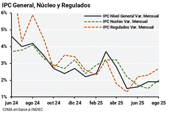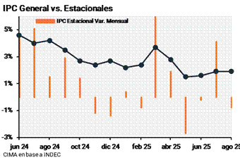 El dato de inflación de agosto, 1.9%, resultó positivo considerando el fuerte aumento del dólar y el alza de los precios regulados (2.7%), que ya acumulan tres meses consecutivos de subas por encima del nivel general. La desaceleración estuvo explicada, en parte, por la caída en la actividad y por factores estacionales que nuevamente jugaron a favor. No obstante, septiembre y octubre suelen ser los meses más desfavorables en términos de estacionalidad, y si a ello se suma el ruido preelectoral, es probable que no se observe un mayor progreso en materia inflacionaria hasta noviembre.
