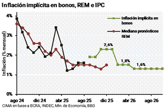 Esta hipótesis también encuentra respaldo en las expectativas de mercado, que proyectan una leve aceleración de la inflación mensual hasta 2.6% en noviembre. De todas formas, aún con la presión cambiaria reciente, no lo interpretamos como un escenario crítico. Salvo alguna excepcionalidad en 2026, el proceso de desinflación podría continuar, apoyado además en un tipo de cambio que, tras los ajustes recientes, luce mucho más sostenible en el tiempo.